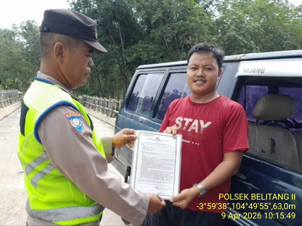 ​Pada Kamis (09/04/2026) siang pukul 10.04 WIB, personel Polsek Belitang II menyambangi warga di Desa Sumber Harapan. Kegiatan ini difokuskan pada penyebaran dan sosialisasi Maklumat Kapolda Sumsel mengenai larangan pembakaran hutan, lahan, maupun ilalang.