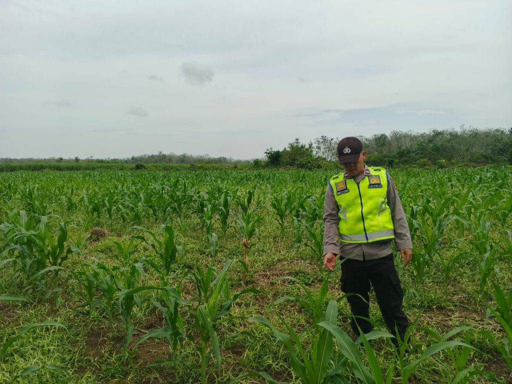 Lahan jagung seluas 1/2 hektare yang dikelola oleh Bapak Samun (42), seorang petani di Desa Bangun Rejo, menjadi fokus pantauan kali ini. Kehadiran personel kepolisian di tengah pematang sawah ini bertujuan untuk memberikan motivasi serta memastikan situasi kamtibmas di lingkungan pertanian tetap kondusif.