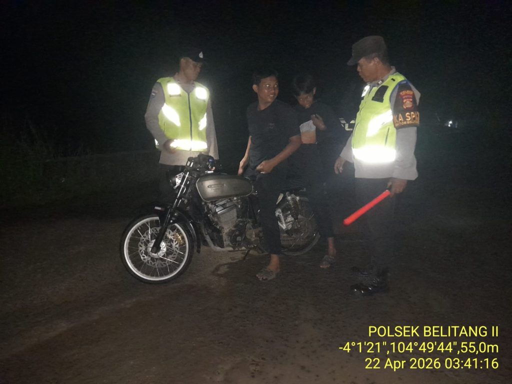 OKU TIMUR – Guna mempersempit ruang gerak pelaku tindak kriminalitas jalanan, Polsek Belitang II melaksanakan giat patroli subuh yang dibarengi dengan razia pemeriksaan kendaraan. Kegiatan ini dilaksanakan di jalan raya Desa Sumber Sari, Kecamatan Belitang II, pada Rabu (22/04/2026) dini hari.
