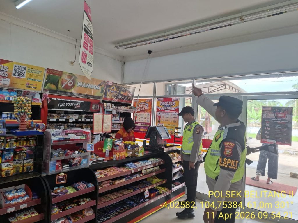 OKU TIMUR – Personel Polsek Belitang II terus meningkatkan kewaspadaan di pusat-pusat keramaian guna menjamin keamanan objek vital dan area perbelanjaan. Kali ini, petugas menyambangi gerai ritel modern Alfamart di wilayah Kecamatan Belitang II untuk memastikan situasi tetap kondusif, Sabtu (11/04/2026).