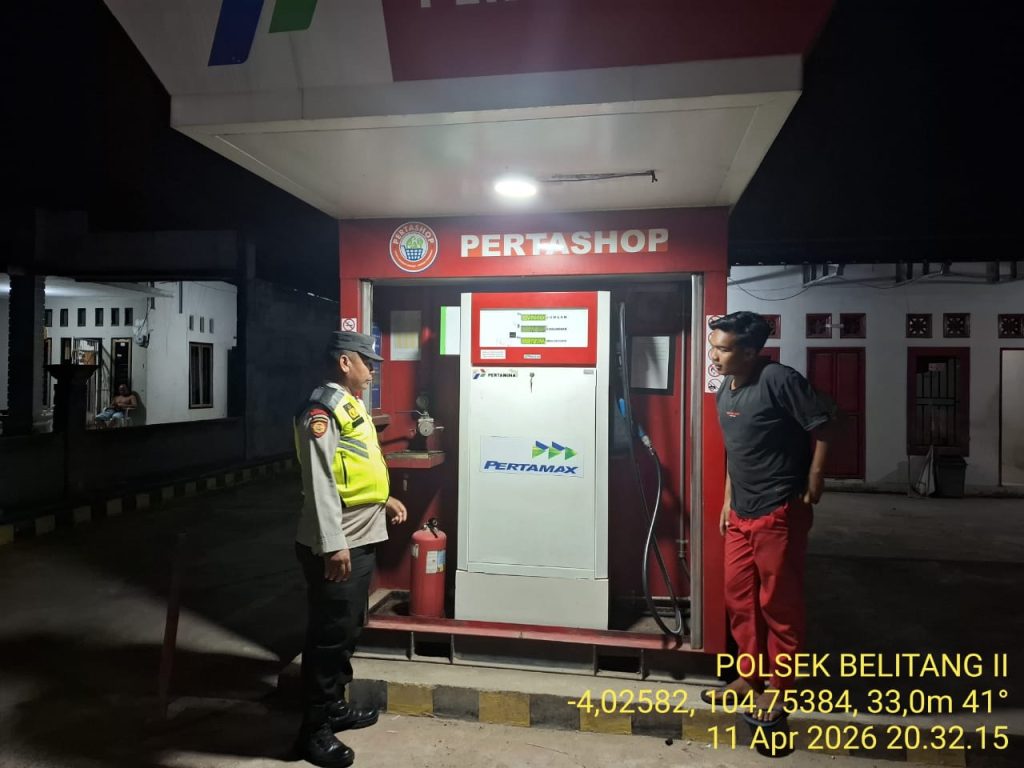 OKU TIMUR – Kepolisian Sektor (Polsek) Belitang II terus mengintensifkan pengawasan terhadap objek vital di wilayah hukumnya guna mencegah terjadinya gangguan kamtibmas maupun tindak kriminalitas. Salah satu sasarannya adalah fasilitas pengisian bahan bakar umum atau Pertashop yang beroperasi di pemukiman warga, Sabtu (11/04/2026).