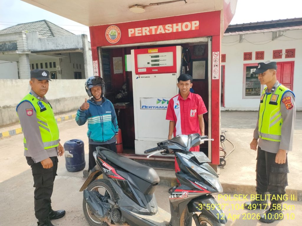 ​Pada Minggu pagi (12/04/2026), sekitar pukul 10.10 WIB, personel piket Polsek Belitang II yang dipimpin oleh Aiptu I Made Sumatra melaksanakan patroli kewilayahan dengan menyasar objek vital Pertashop yang berlokasi di jalan raya Desa Sumber Jaya, Kecamatan Belitang II, Kabupaten OKU Timur.