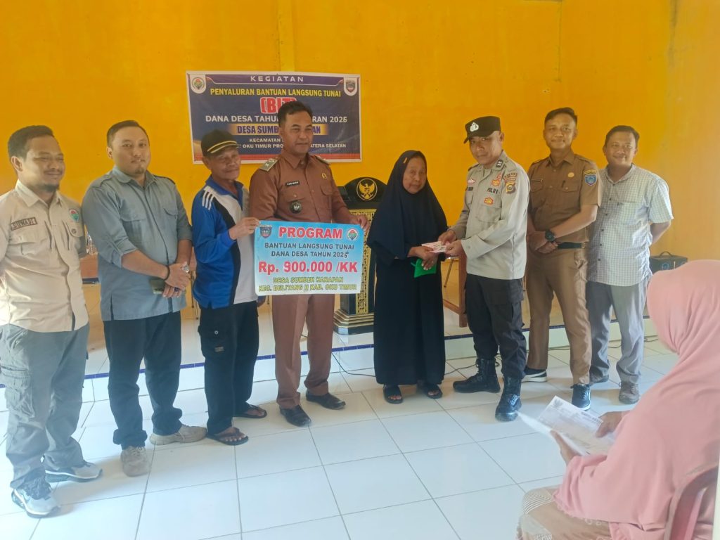 OKU TIMUR – Pemerintah Desa Sumber Harapan, Kecamatan Belitang II, Kabupaten OKU Timur, sukses menyalurkan Bantuan Langsung Tunai (BLT) yang bersumber dari Dana Desa (APBN) Tahun Anggaran 2026. Kegiatan yang berlangsung pada Senin (13/4/2026) pagi ini mendapatkan pengamanan dan pengawalan ketat dari jajaran Polsek Belitang II.
